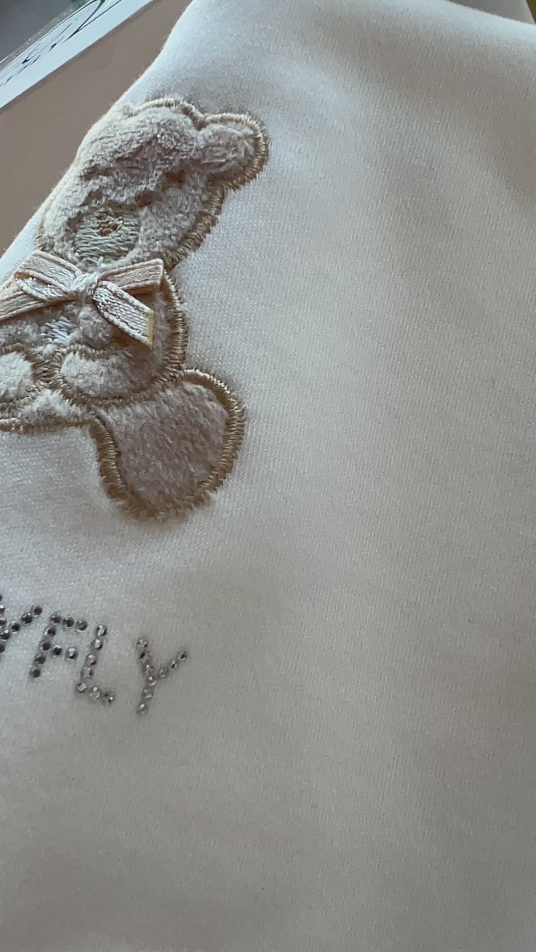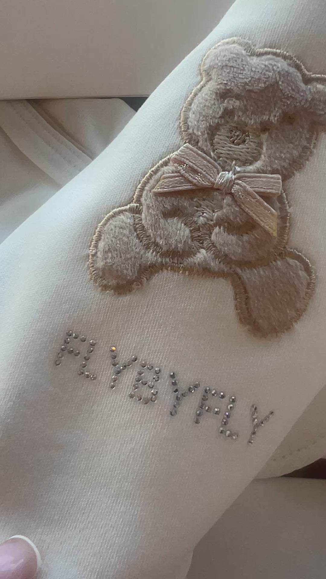 מארז רך ונעים הכולל אוברול, סינר וכובע בעיצוב תואם ומיוחד. כל פריט מעוטר ברקמת דובי ושיבוץ עדין של אבני FLYBYFLY, שמוסיפים טאץ' יוקרתי למראה.