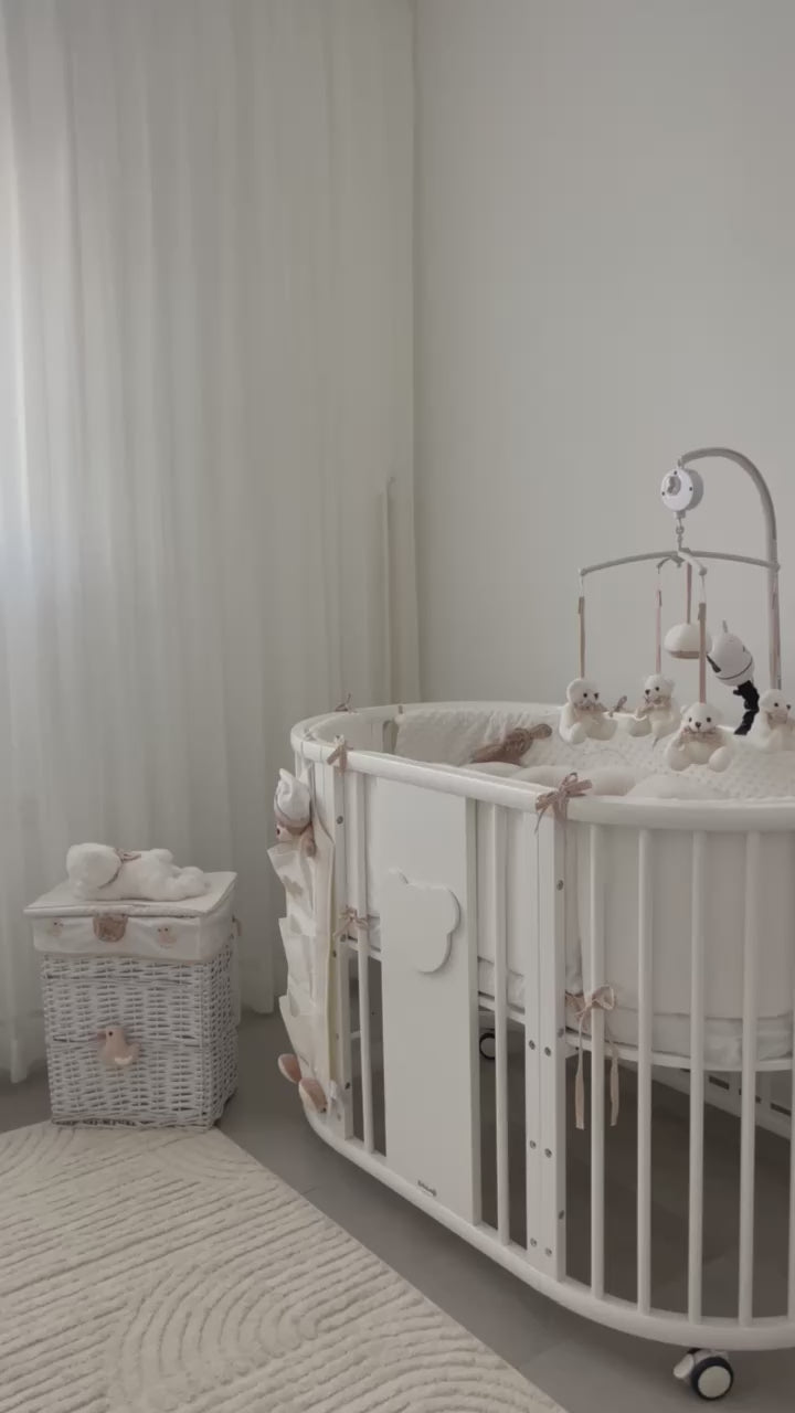 הוא רחב מאוד מצד אחד, ומצד שני מספק תחושה עוטפת ובטוחה באמצעות הכריות הגבוהות התוחמות, שמהוות חציצה מהקיר הקר ובהמשך ישמשו גם כמשענת ראש לתינוק הגדל .